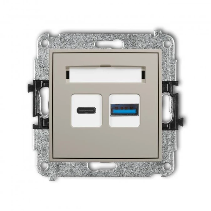 ICON Mechanizm ładowarki USB podwójnej USB C + USB A, 20W max., bez pola opisowego taupe 60ICUSBBO-8