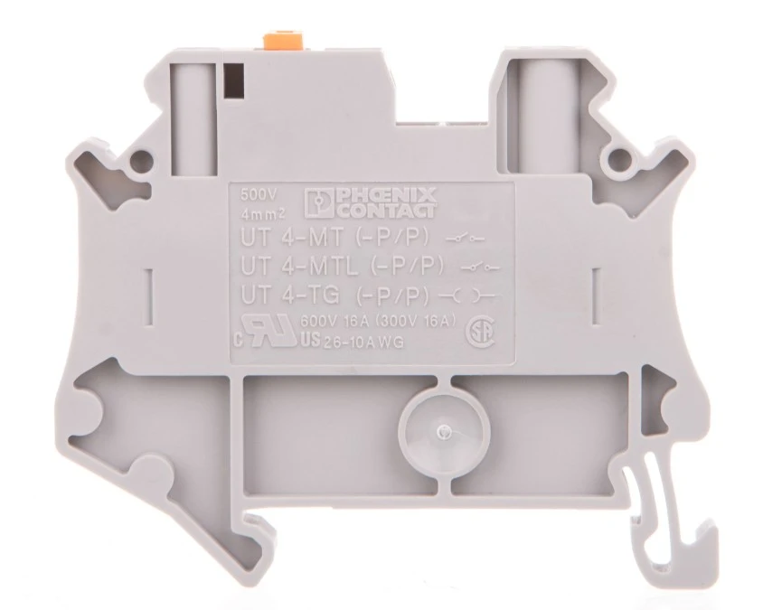 5. Złączka przelotowa 2-przewodowa z odłącznikiem nożowym 0,14-6mm2 szara UT 4-MT-P/P 3046171 /50szt./ 816.11