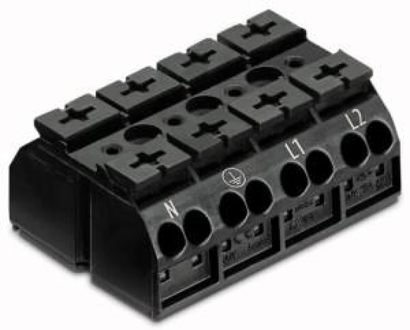Blok zasilający 4-biegunowy czarny nadruk N-PE-L1-L2 862-8504 /200szt./