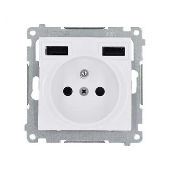 13. Simon 54 Gniazdo wtyczkowe ze zintegrowaną ładowarką 2xUSB (moduł), 2.1 A, 5 V DC, 230 V biały DGZ1ZUSB2AA.01/11 180.29