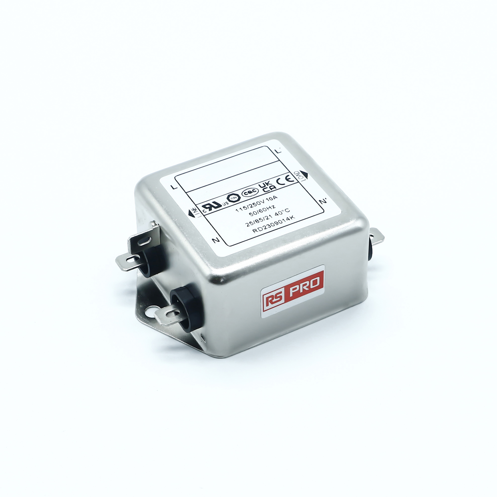 Filtr EMI 10A 1-fazowy 250 V AC 50/60Hz 2 x 0,3 mH RS PRO Montaż w obudowie