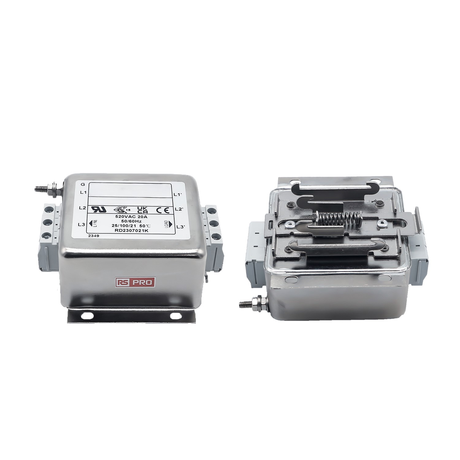 15. Filtr sieciowy 20A 3-fazowy 300/520 V AC 50 → 60Hz 3 x 0,3mH RS PRO, montaż na szynie DIN 222.57