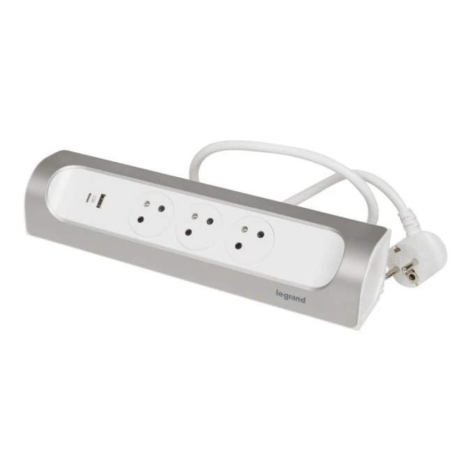 HELMO Przedłużacz narożny 3x2P+Z USB A+C z przewodem 1.0m 3x1.5 mm2 biały/aluminium 049406