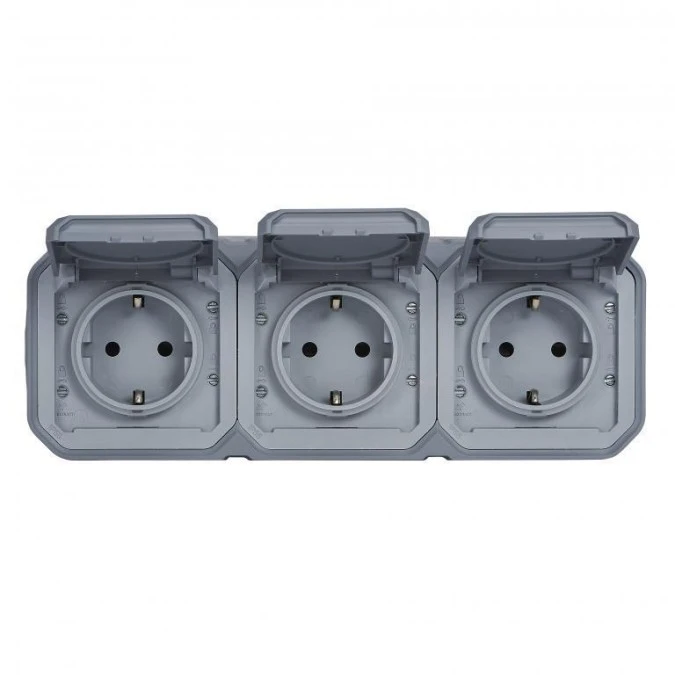 NOWE PLEXO 55 Gniazdo schuko 3x2P+Z poziome komplet natynkowy 16A - 250V AC szare 069743L