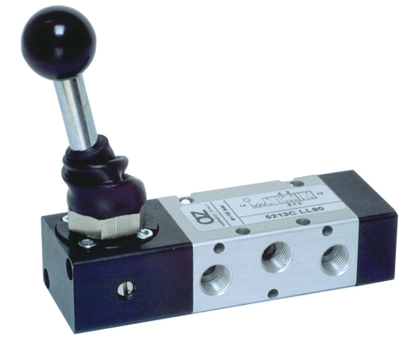 Zawór rozdzielający pneumatyczny ręczny 5/2 G 1/4 bistabilny, bez sprężyny, dźwignia, AZ Pneumatica