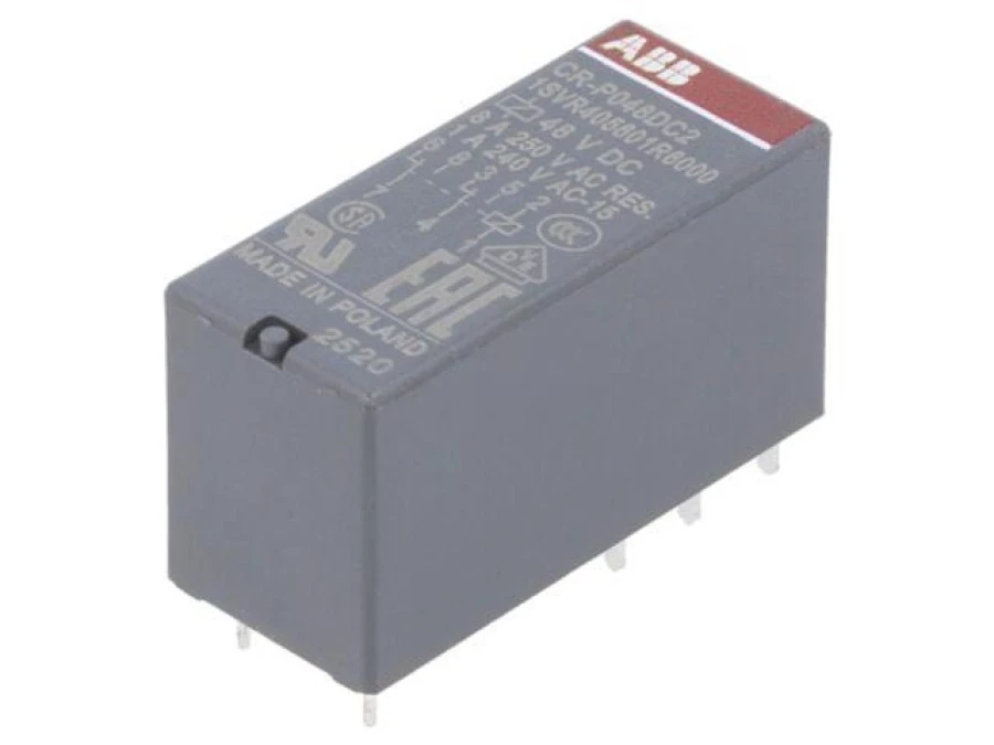 15. Przekaźnik elektromagnetyczny, DPDT, Napięcie Cewki: 48VDC, 8A, CR-P, PCB 1SVR405601R6000 26.22