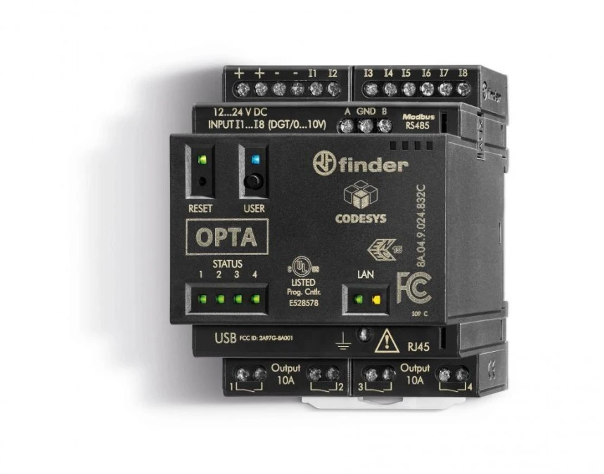 Programowalny przekaźnik logiczny Finder CODESYS ADVANCED 12...24V DC RJ45 lub MODBUS TCP/IP, MODBUS RS485 8A.04.9.024.832C