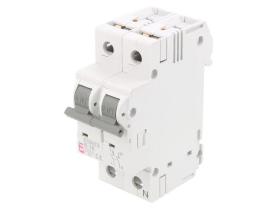 9. Wyłącznik nadprądowy, 230/400VAC, Prąd znamionowy: 16A, Bieguny: 1+N, 6kA ETIMAT 6 1P+N B16 60.04