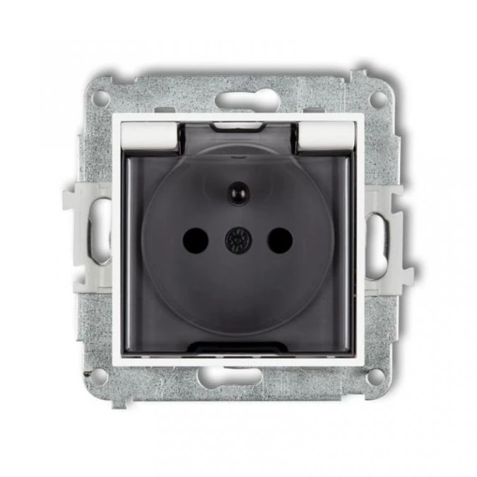 ICON Mechanizm gniazda bryzgoszczelnego z uziemieniem 2P+Z (klapka dymna, przesłony torów prądowych) szary mat 27IGPB-1zdp