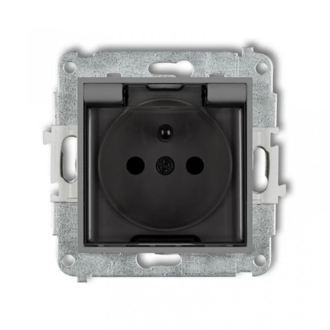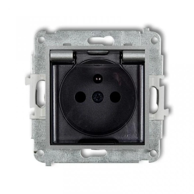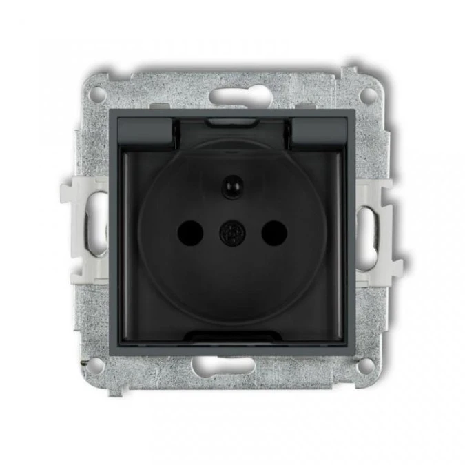 ICON Mechanizm gniazda bryzgoszczelnego z uziemieniem 2P+Z (klapka dymna, przesłony torów prądowych) grafitowy mat 28IGPB-1zdp