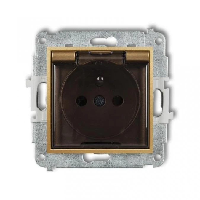 ICON Mechanizm gniazda bryzgoszczelnego z uziemieniem 2P+Z (klapka dymna, przesłony torów prądowych) złoty 29IGPB-1zdp