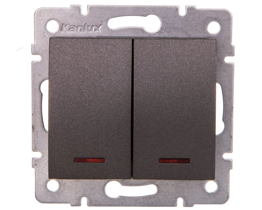 LOGI Łącznik dwugrupowy świecznikowy z LED śrubowy 10AX 250V grafit 021120141 25257