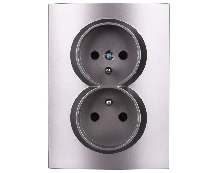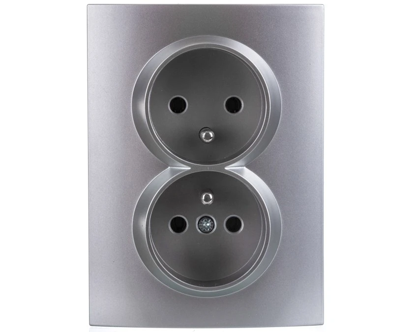 LOGI Gniazdo podwójne 2x2P+Z kompletne śrubowe 16A 250V Srebrny 25212