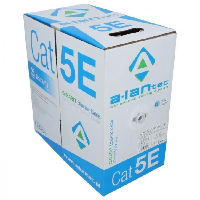 7. Kabel sieciowy U/UTP kat.5e skrętka 4x2x0,51mm wewnętrzny B2ca bezhalogenowy LSOH szary Alantec /305m/ 789.16