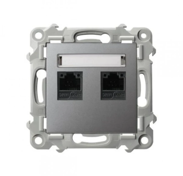 SZAFIR Gniazdo komputerowe podwójne, kat. 5e MMC szary mat GPK-2Z/K/m/70