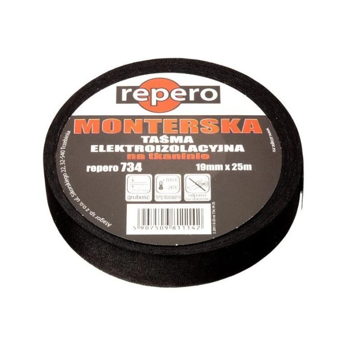 13. Taśma izolacyjna monterska na tkaninie 19mm x 25m Repero 734 czarna 20.18