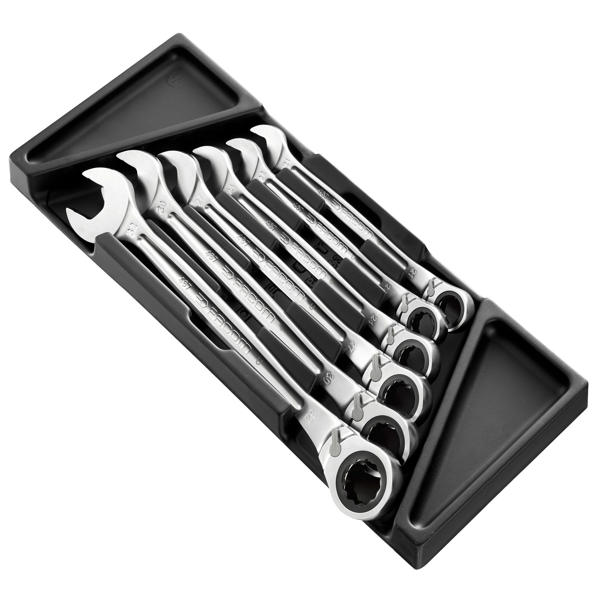 8. Zestaw narzędzi nastawnych Zestaw klucza płasko-oczkowego z mechanizmem zapadkowym Facom 21 → 32 mm 6 szt. 2412.73