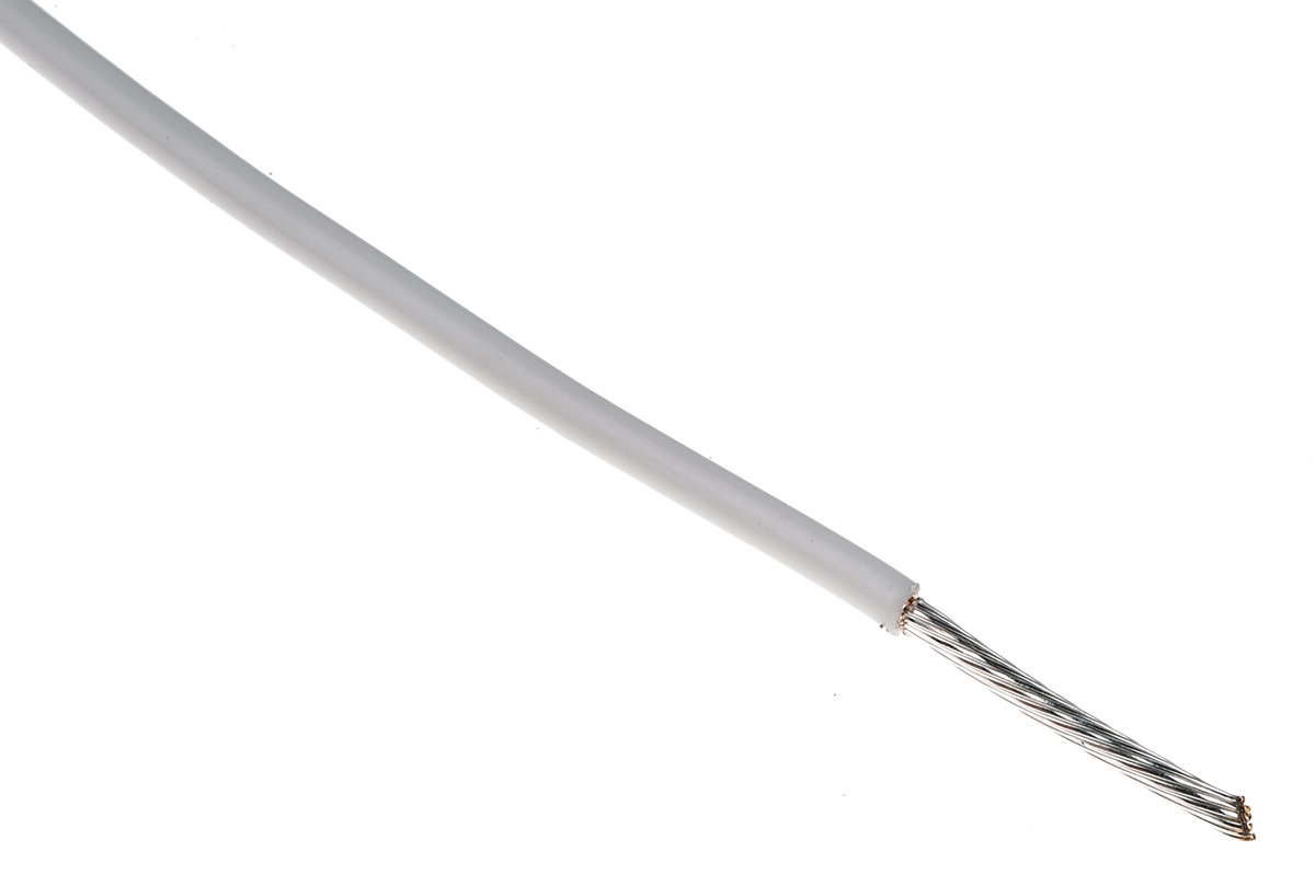 3. Przewód jednożyłowy linkowy 1.23 mm² Biały Alpha Wire PTFE 16 AWG 600 V dł. 30m 19/0,29 mm +200°C MIL-W-16878/4, NEMA 821.64
