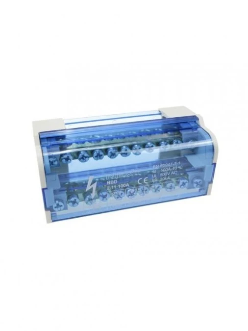 Modułowy blok rozdzielczy 100A materiał PA66, klasa V0, TH-35 na szynę DIN NBD 2-11-100A