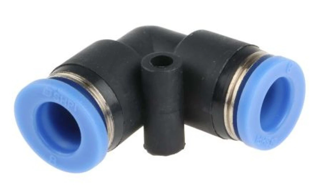Adapter gwintowany typu kolanko rura – rura, Wciskane 8 mm, Wciskane 8 mm, Żeńskie, Żeńskie, 10 barów