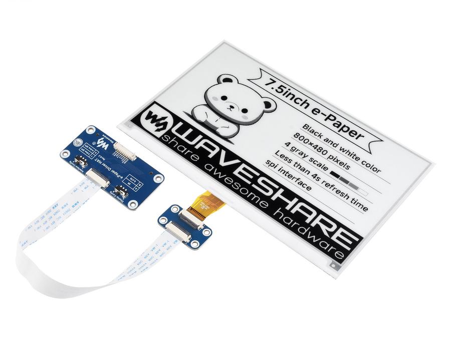4. Waveshare 7.5inch e-Paper (G) E-Ink Optical Bonding Display, 800×480, Black / White, SPI, without PCB 273.03