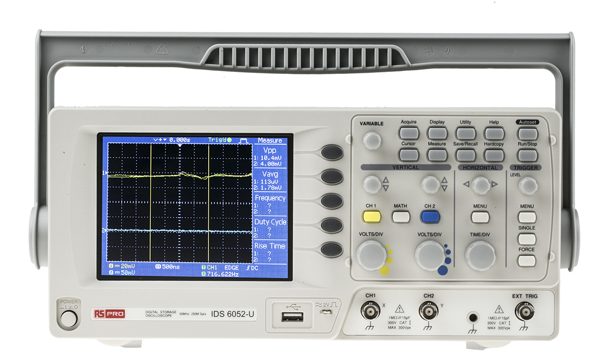 Oscyloskop 50MHz RS PRO Stacjonarny Cyfrowy CAT II 300V IDS6052U USB