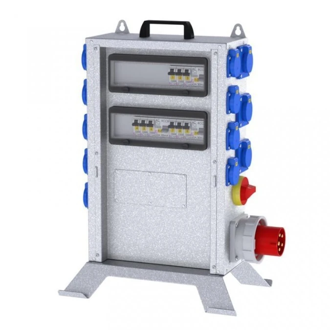 15. Rozdzielnica budowlana ERB z oświetleniem, na stojaku z kołami, z licznikiem, IP54, gniazda: 2x CEE 32A, 2x CEE 16A, 4x GS 230V, 3649.16