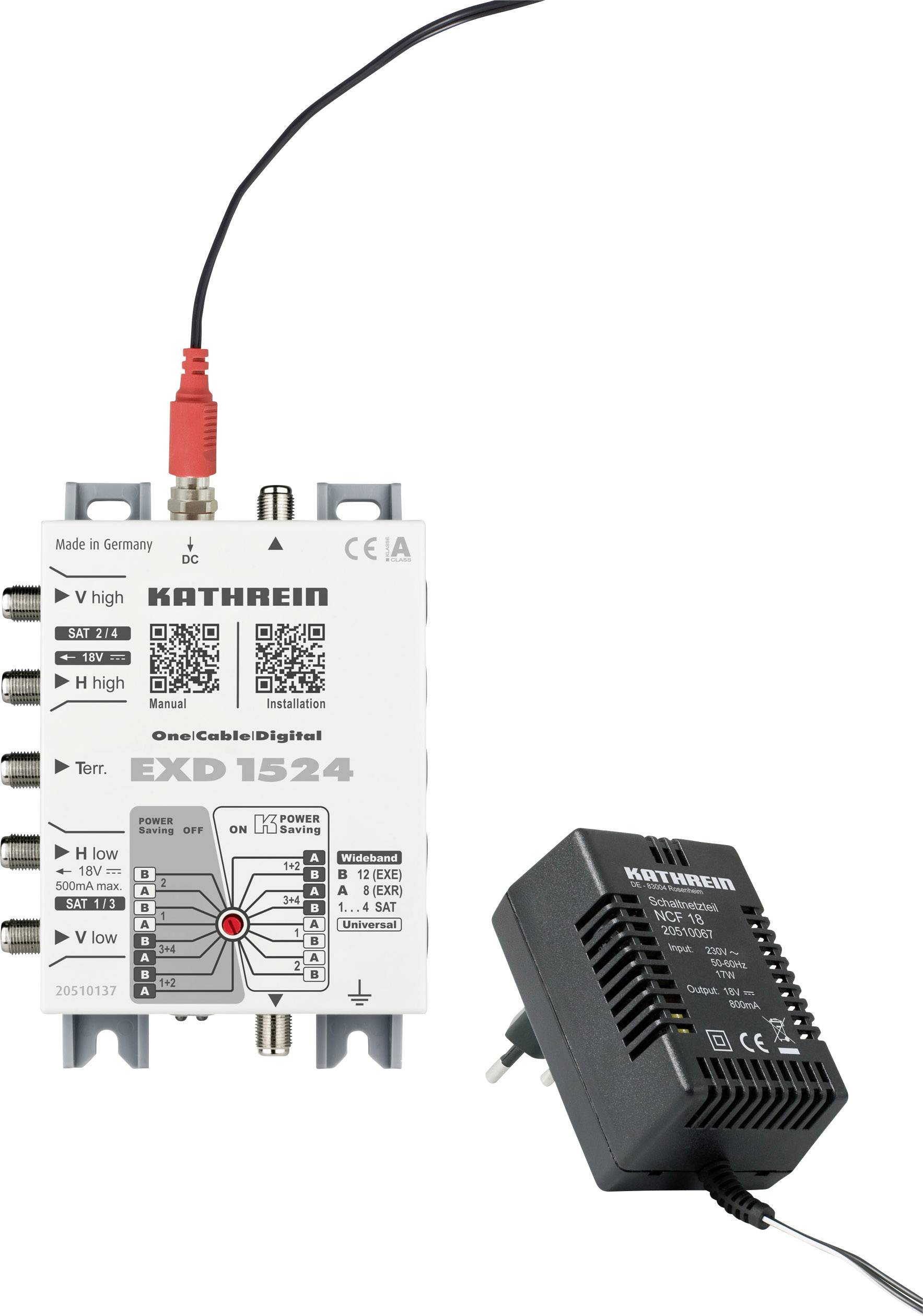 Kathrein EXD 1524 Multiprzełącznik SAT, kaskadowy, jednokablowy Wejścia (multi-switch): 5 (4 sat/ 1 naziemne) Ilość ucze