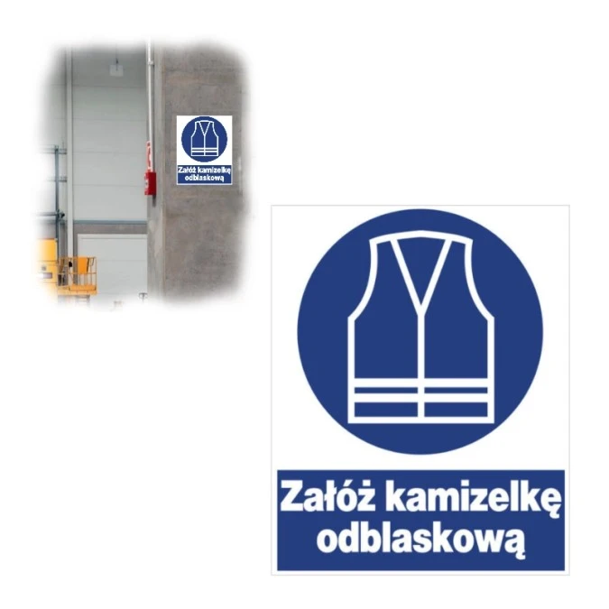 1. Tabliczka BHP Tablica Znak Nakazu ZAŁÓŻ KAMIZELKĘ OCHRONNĄ 225x275 mm 17.99