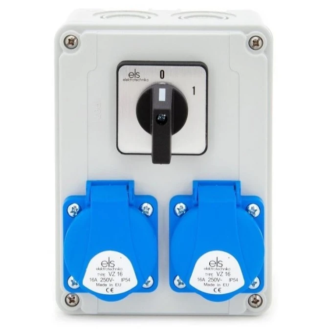 Rozdzielnica budowlana 2*GS 230V + wyłącznik 0-1, obudowa naścienna, ELS Elektrotechnika, N200-01