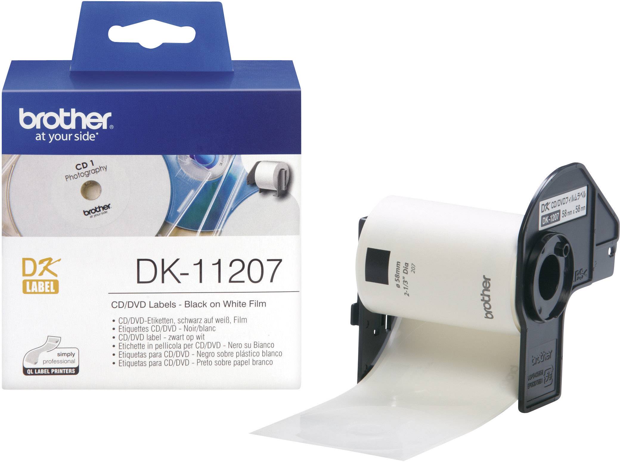 Etykiety do drukarek etykiet Brother DK11207, Ø 58 mm, Etykiety CD, Etykiety DVD, biały