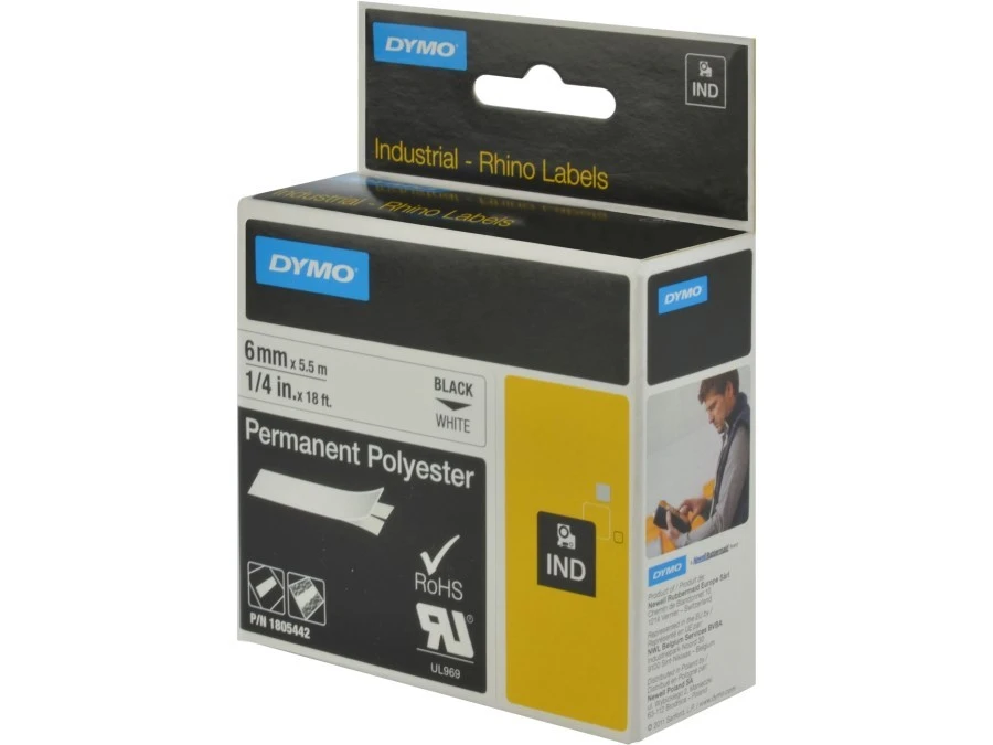 6. Taśma poliestrowa trwała do drukarek 6mm x 5,5m czarna na białym 1805442 102.51