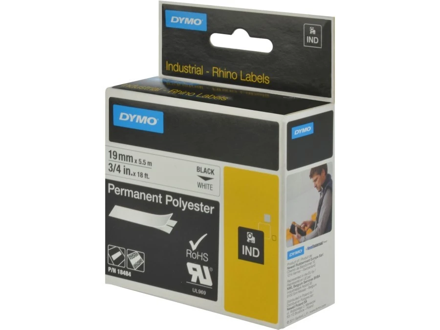 14. Taśma poliestrowa do drukarek trwała 19mm x 5,5m czarna na białym S0718220 18484 110.39