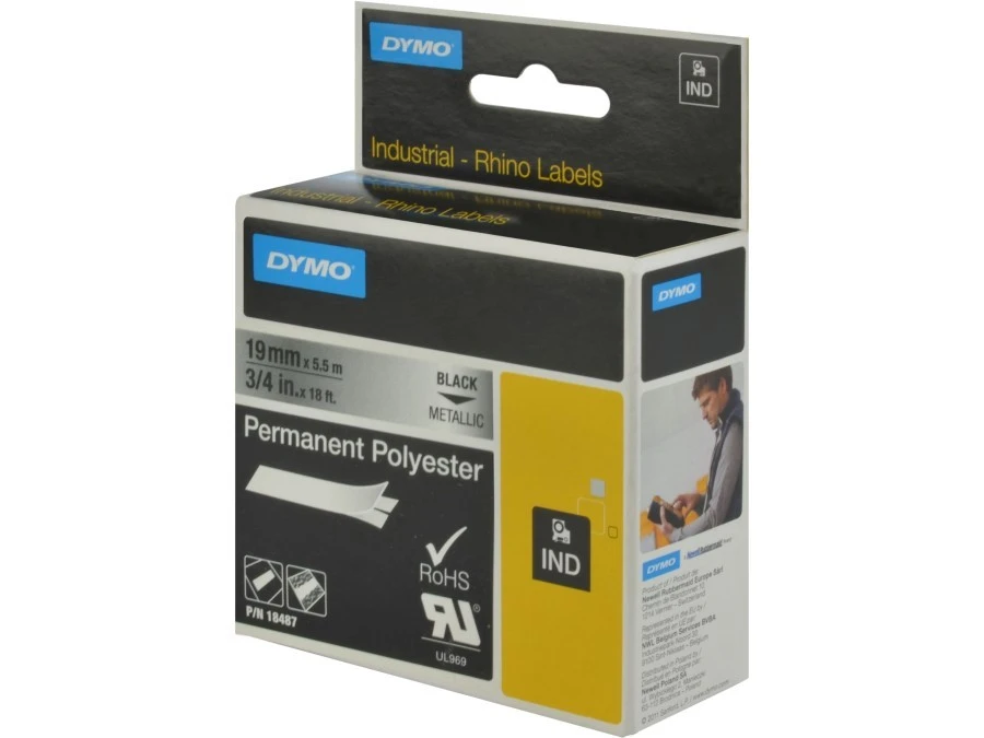 Taśma poliestrowa trwała do drukarek 19mm x 5,5m czarna na metalicznym S0718200 18487