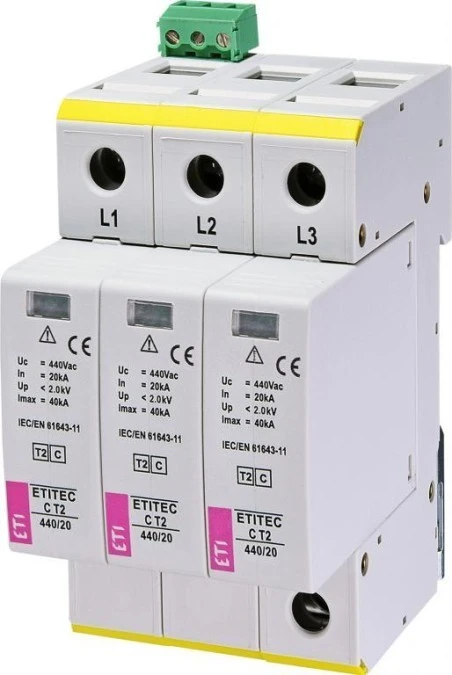 9. Ogranicznik przepięć typ T2 (C) ETITEC C T2 440/20 3+0 RC do sieci IT 002440412 460.78