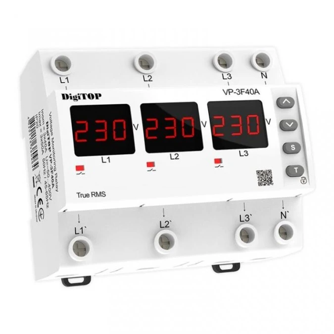 12. Przekaźnik napięciowy trójfazowy DigiTop VP-3F40A 437.44