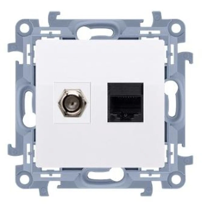 KONTAKT-SIMON 10 Gniazdo antenowe F + komputerowe RJ45 biały mat