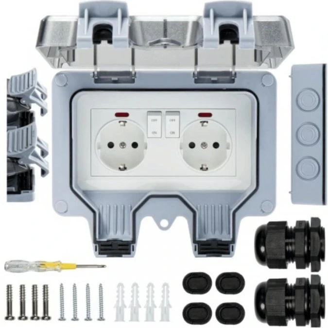 Gniazdo ogrodowe podwójne BESTEN IP66 z przełącznikami i pokrywą