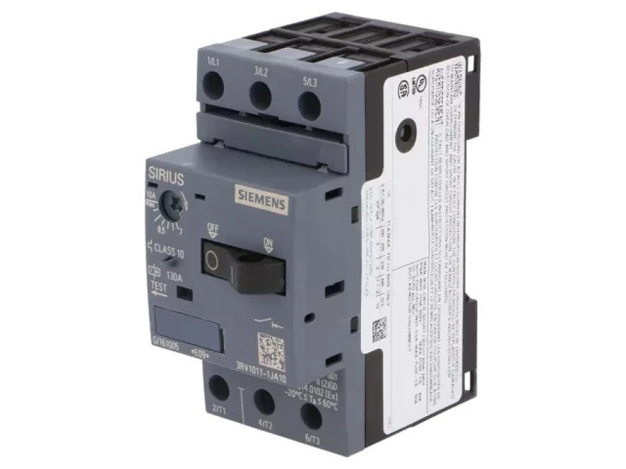 6. Wyłącznik zasilania Siemens 3RV2021-0KA10 Zakres ustawienia (Prąd): 0.9 - 1.25 A Maksymalne napięcie przełączania: 690 V 419.00