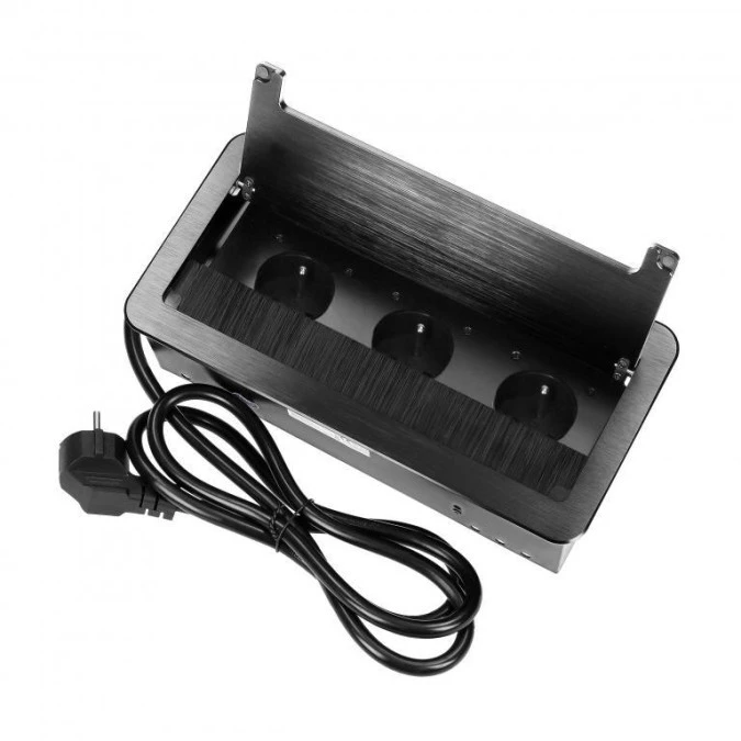 Gniazdo meblowe wpuszczane w blat z płaskim frezowanym rantem, szczotką przeciwkurzową i przewodem 1,5m, 3x2P+Z (Fr,OR-GM-9045/B