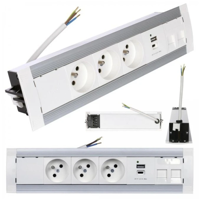 Simon 480 Listwa zasilająca na 3 gniazda + 2 gniazda USB (typ A + typ C) biała