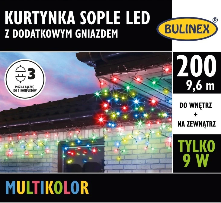 Kurtyna świetlna zewnętrzna 200l kurtyna sople z dod.gniazdem 10m dekoracji+5 m przewodu zasilającego 13-571
