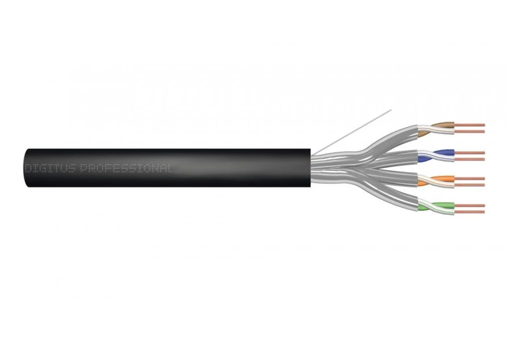 8. Kabel instalacyjny zewnętrzny żelowany DIGITUS kat.6A,U/FTP, Fca, AWG 23/1, PE, 500m, czarny, szpula DK-1621-A-VH-5-OD 1763.00