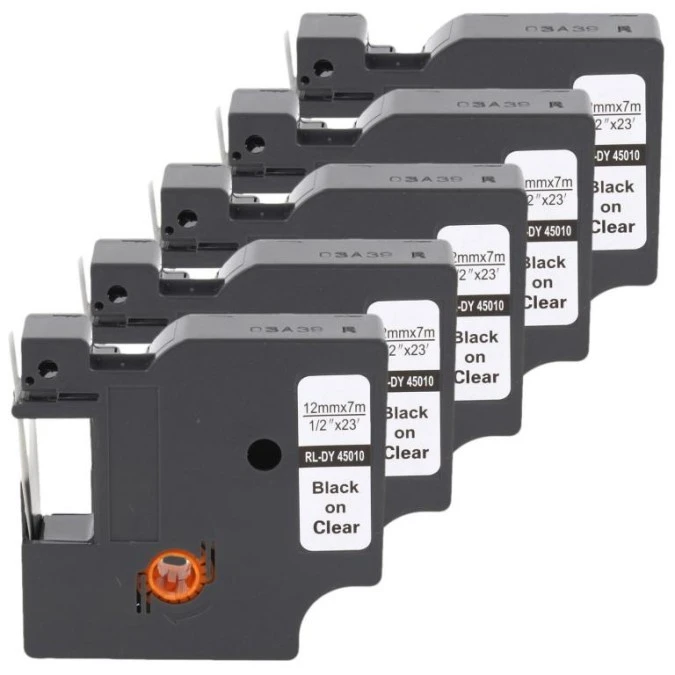 Taśma 5x D1 45010 do drukarki DYMO 12mm 7m przeźroczysta taśma czarny /5szt./nadruk