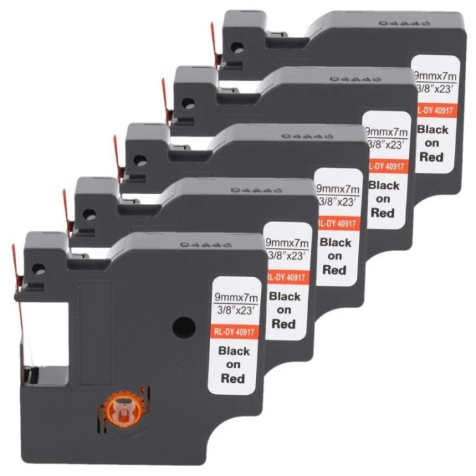Taśma 5x D1 40917 do drukarki DYMO 9mm 7m czerwona taśma czarny nadruk /5szt./
