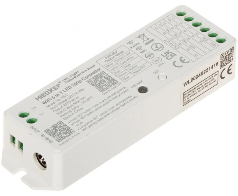 Sterownik oświetlenia LED WL5 Wi-Fi, 2.4 GHz, RGBCCT (RGBWW) 12... 48V DC