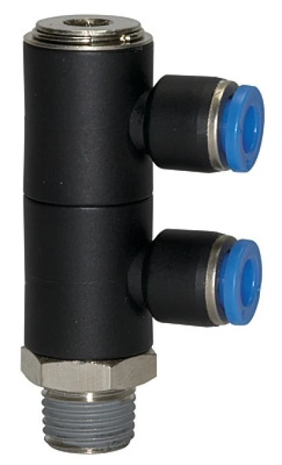 12. Rozdzielacz wtykowy pneumatyczny 2x banjo R 1/8 GZ do węża fi 8 mm, tworzywo sztuczne 30.04
