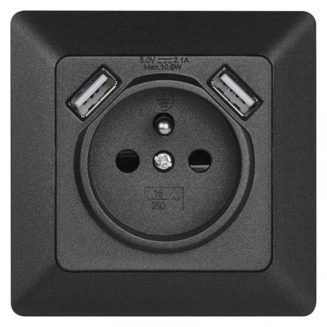 Gniazdo FRENCH z USB 2,1A max. IP20 antracyt EMOS A6000.2