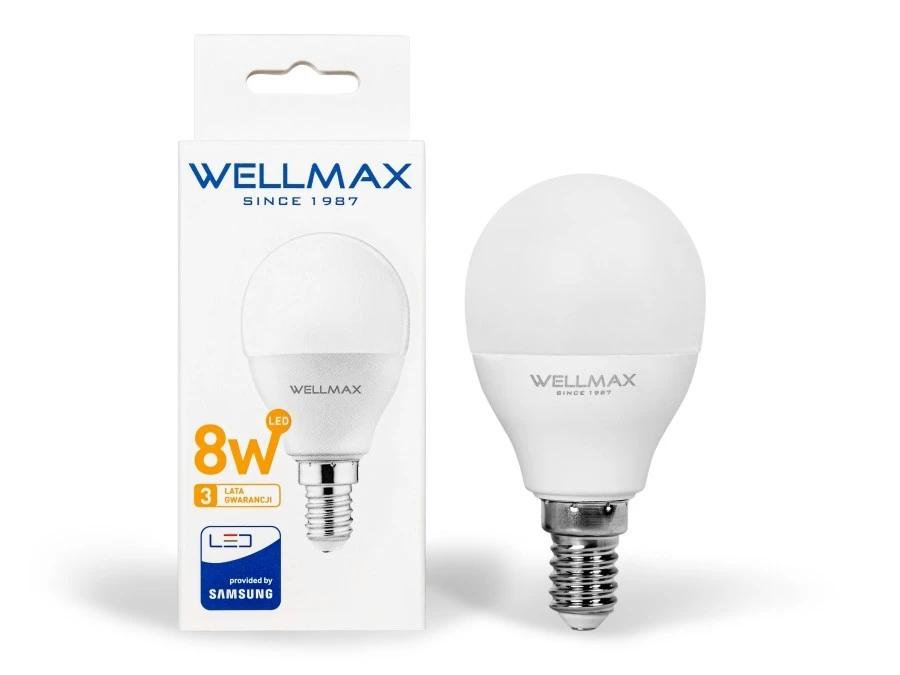 Żarówka WELLMAX LED 8W E14 Kulka 90lm/W 720 lm ...