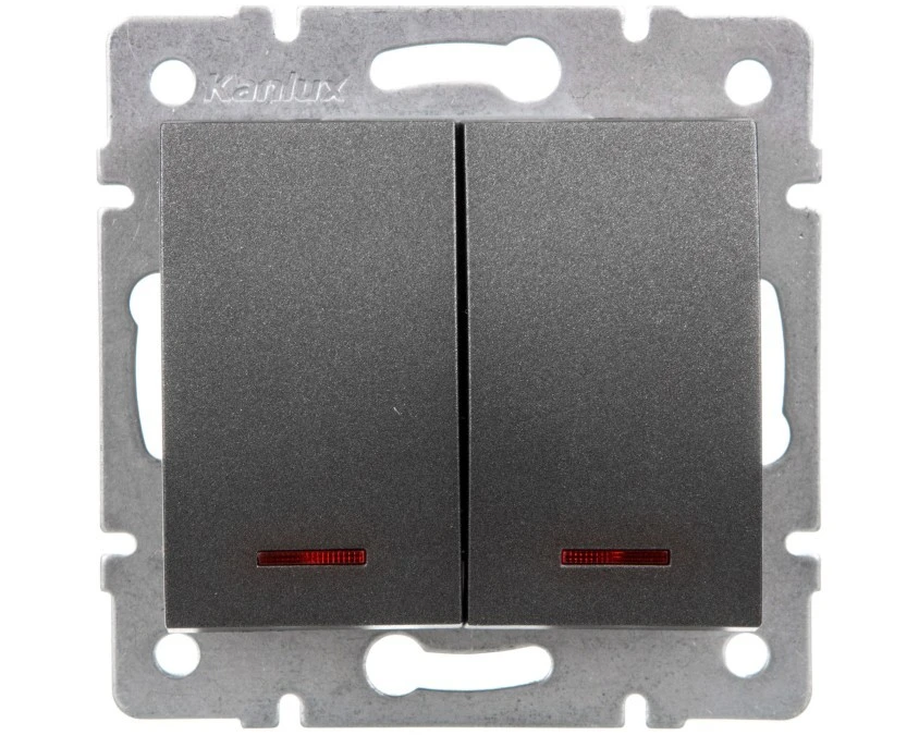 LOGI Łącznik zwierny podwójny LED śrubowy 10AX 250V grafit 021023141 25248